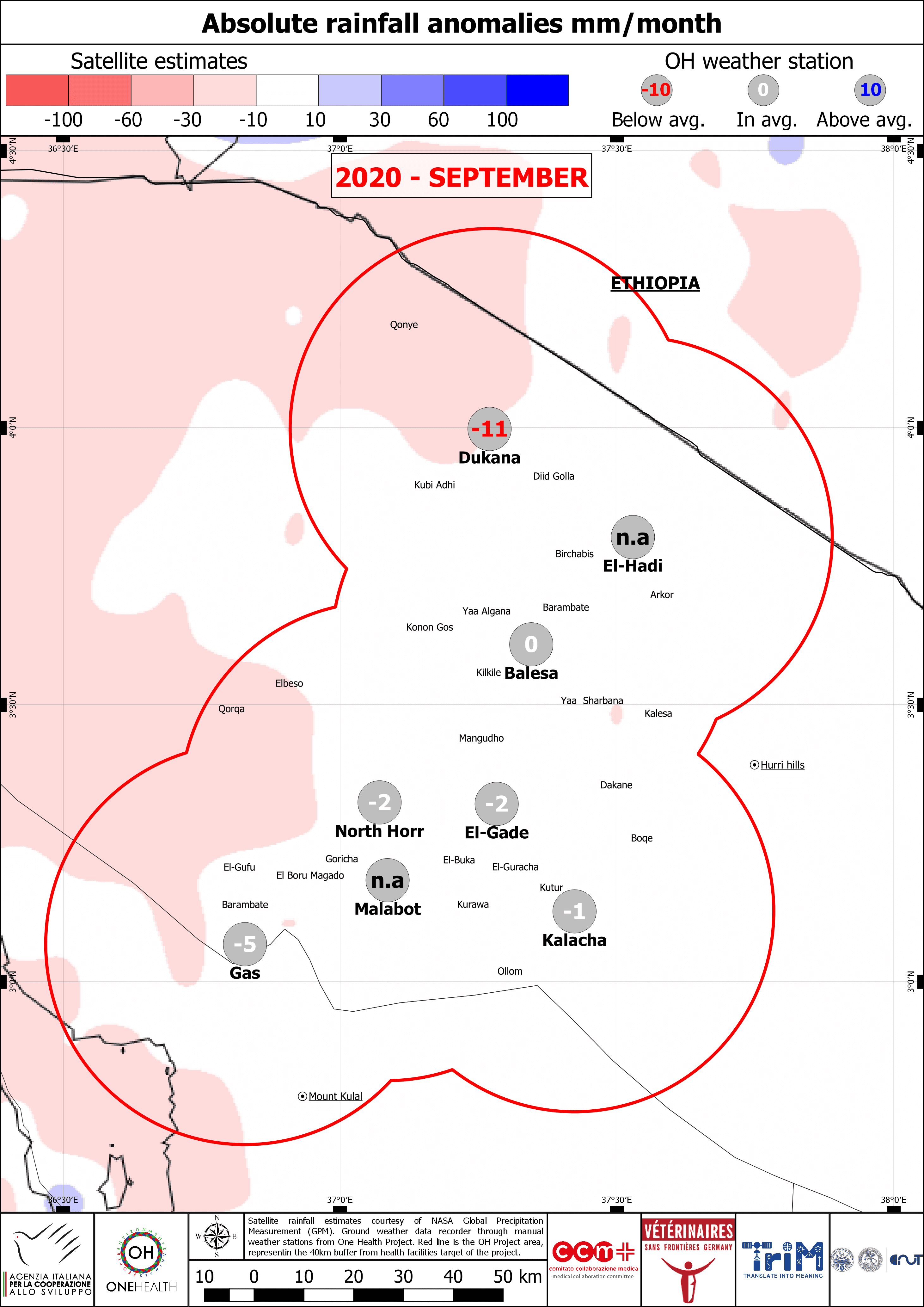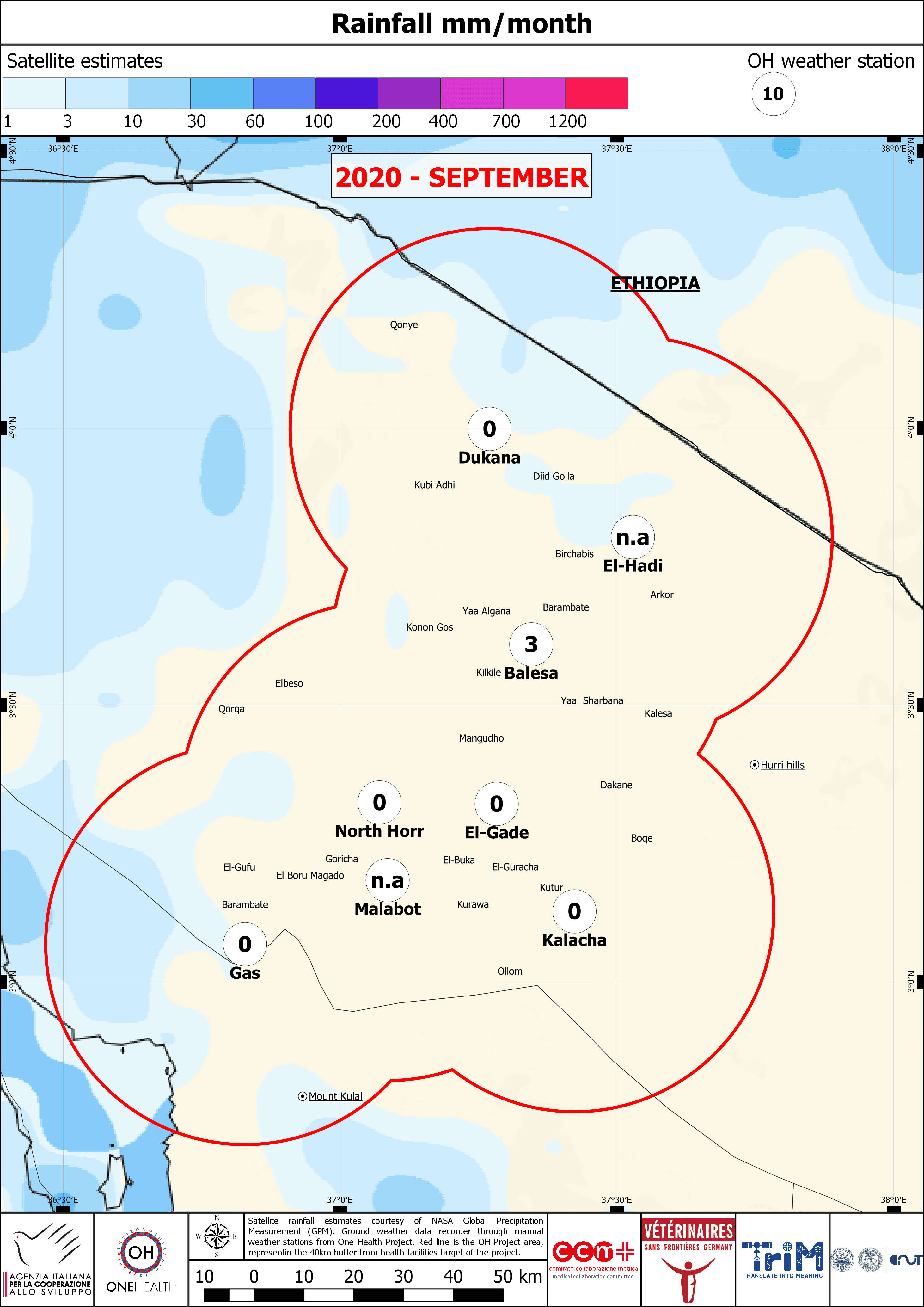 September 2020 was characterized by very light or no rainfall over North Horr Sub-County. These values are mainly in line with the climatology of the area. According with the climate baseline, the rainfall likelihood should increase in October. We will keep monitoring.